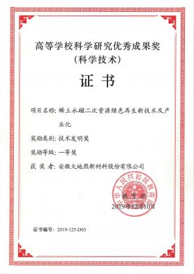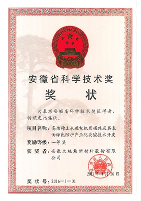 大地熊公司始終堅持以“科技創(chuàng)新”為企業(yè)之本,通過自主研發(fā)、技術(shù)引進、科技成果轉(zhuǎn)化、產(chǎn)學(xué)研合作等途徑,形成了先進的企業(yè)技術(shù)創(chuàng)新體系與核心競爭力。在稀土永磁產(chǎn)品制備方法、表面防護、制品加工以及檢測測試等方面取得了較多優(yōu)秀成果。公司已授權(quán)專利148件,國內(nèi)外發(fā)明54件。主導(dǎo)制定《再生釹鐵硼永磁材料 》國家標準1項,參與制定和修訂《燒結(jié)釹鐵硼永磁材料》等國家標準7項。榮獲安徽省科技進步一等獎、二等獎、三等獎各1項;教育部技術(shù)發(fā)明一等獎、二等獎各1項、國家重點新產(chǎn)品2件、安徽省新產(chǎn)品4件、高新技術(shù)產(chǎn)品7件。